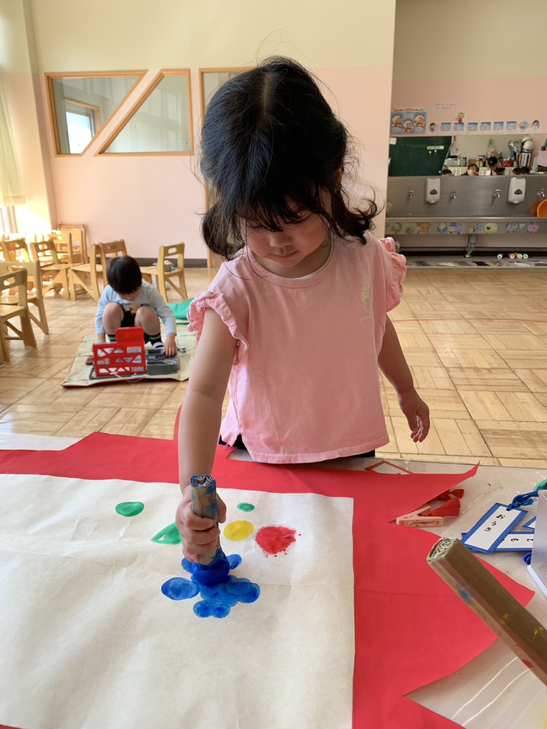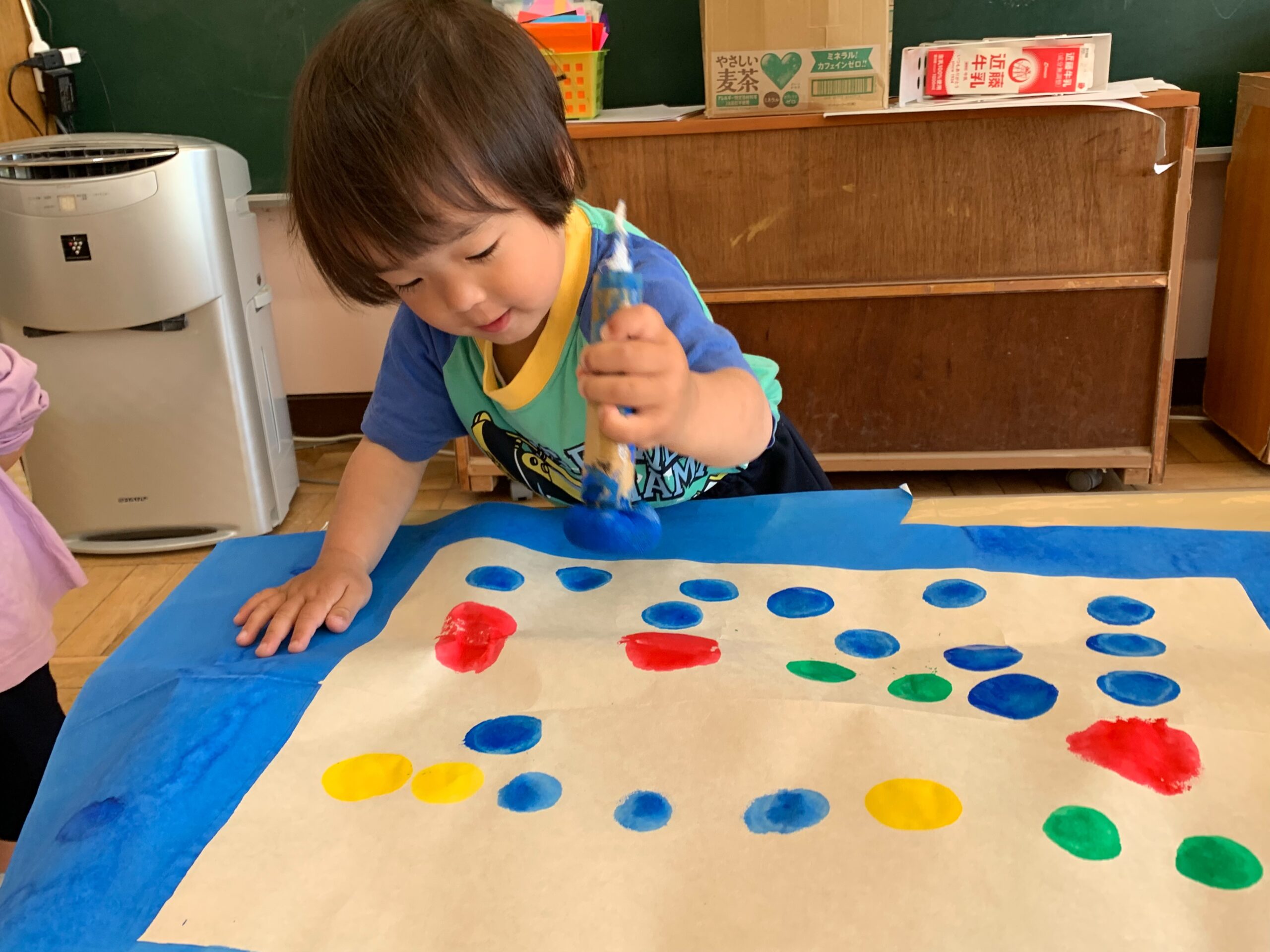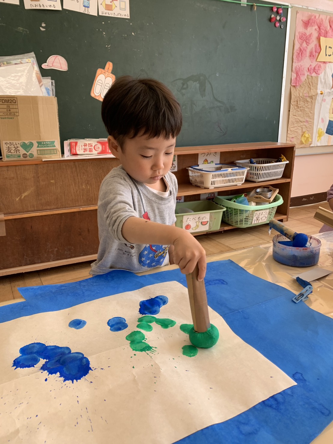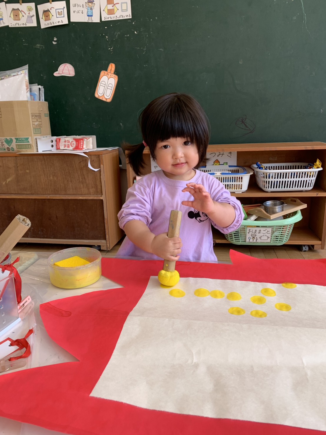 タンポを使ってこいのぼりに模様をつけました☆