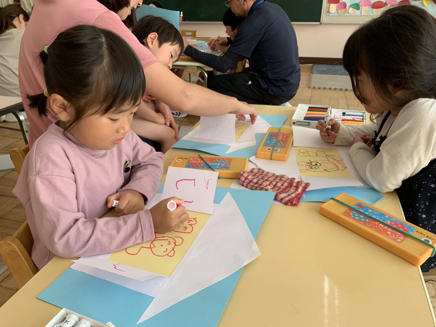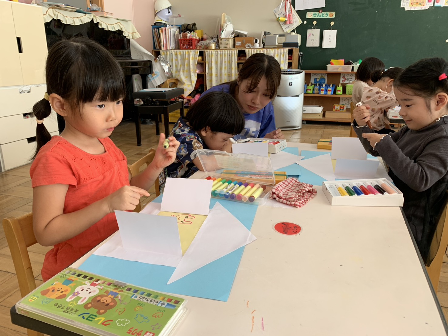 絵の具を使って、のびのびと表現を楽しみました!色が混ざるおもしろさや、筆の動かし方を感じながら思い思いに描いていました。世界にひとつだけの素敵な作品がたくさんできあがりました☆