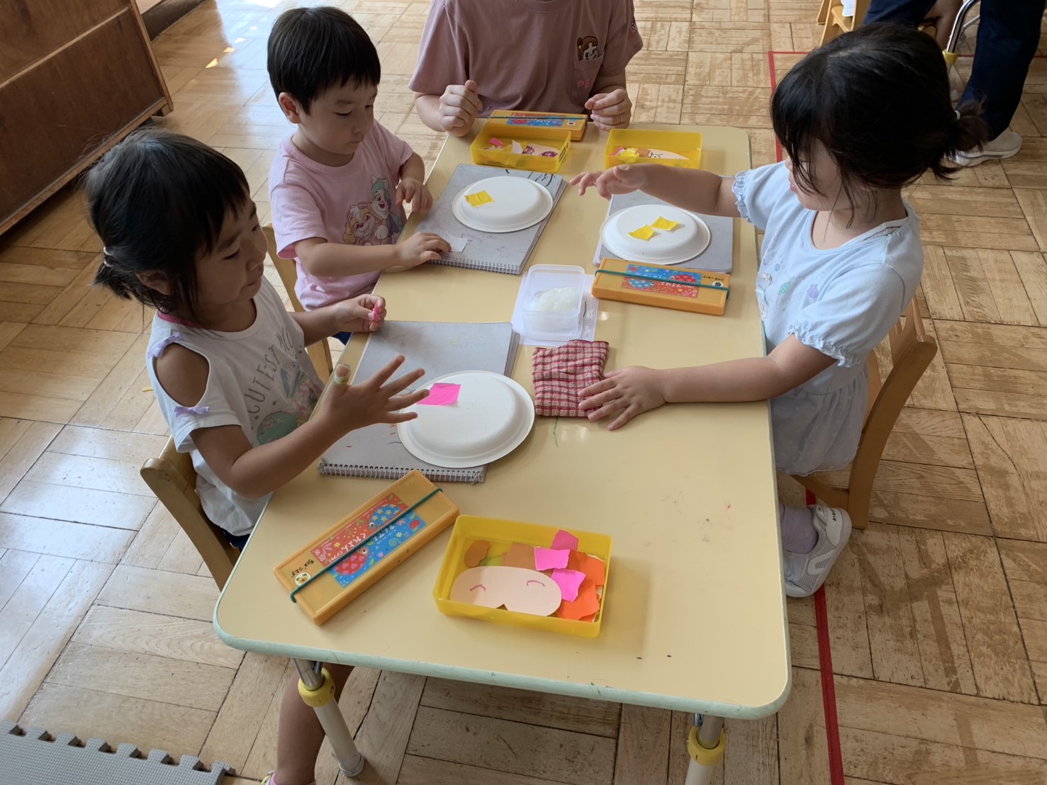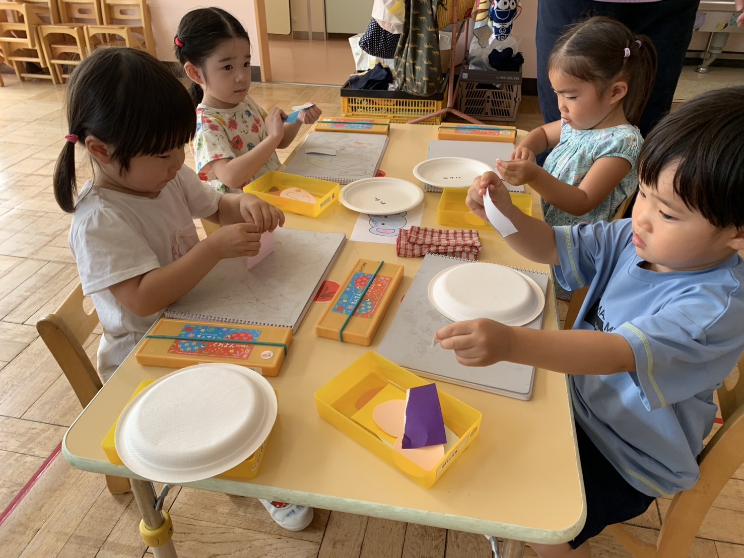 折り紙をちぎってのりでパーツを貼って素敵なフクロウを完成させることが出来ました☆