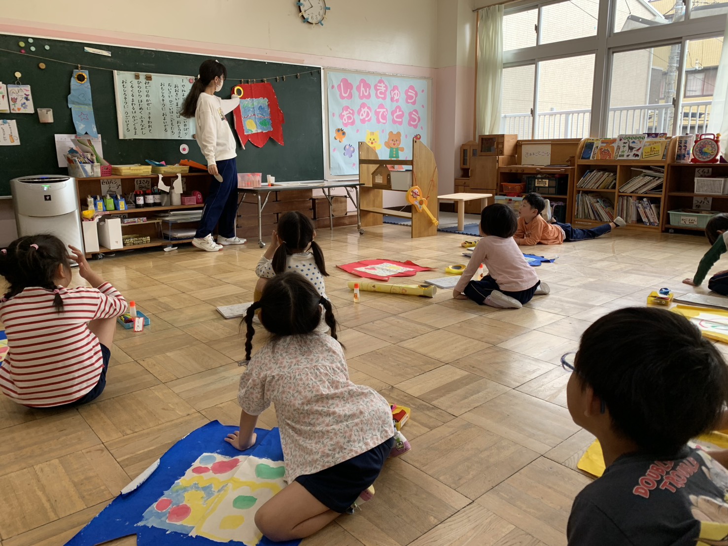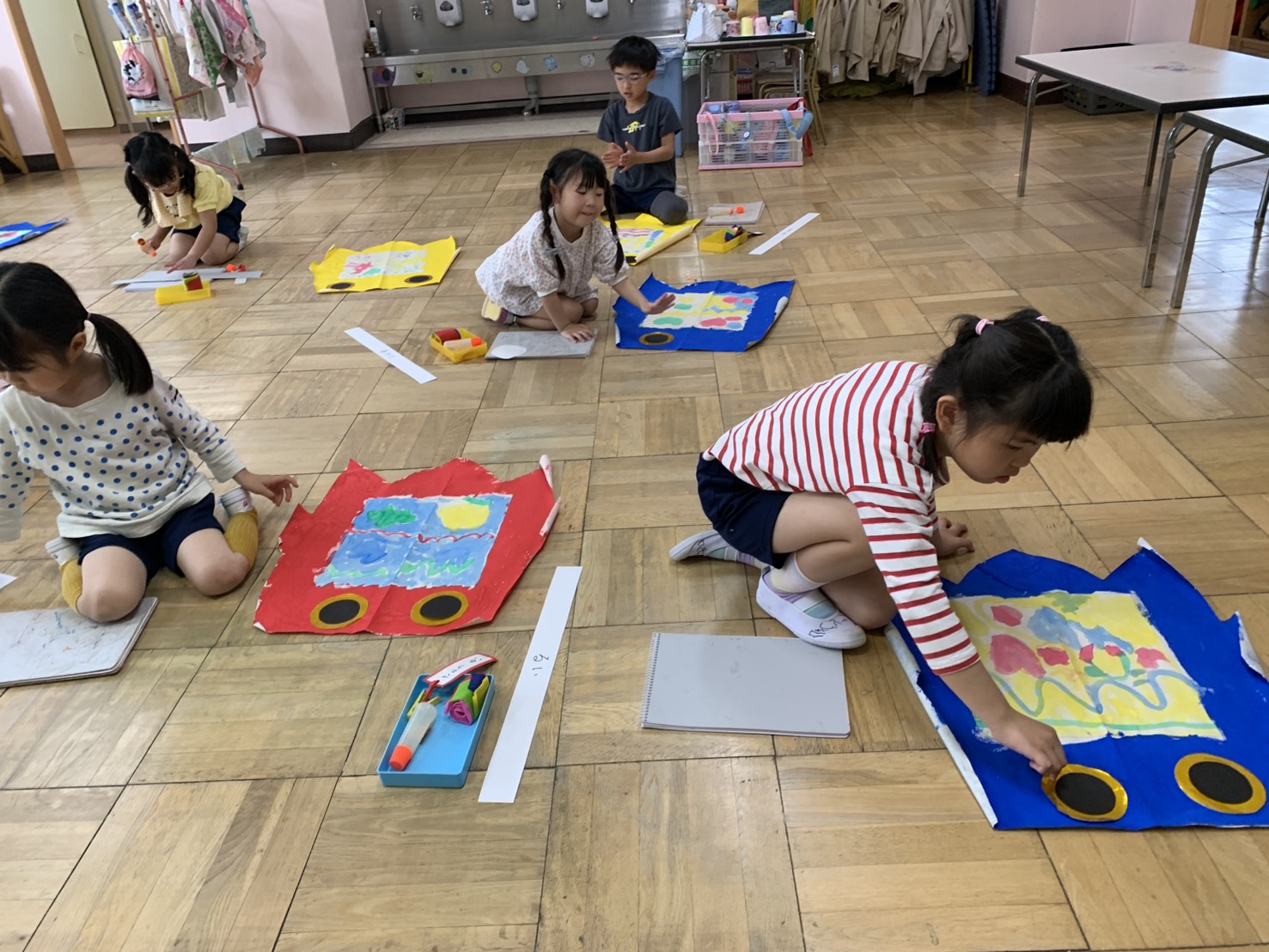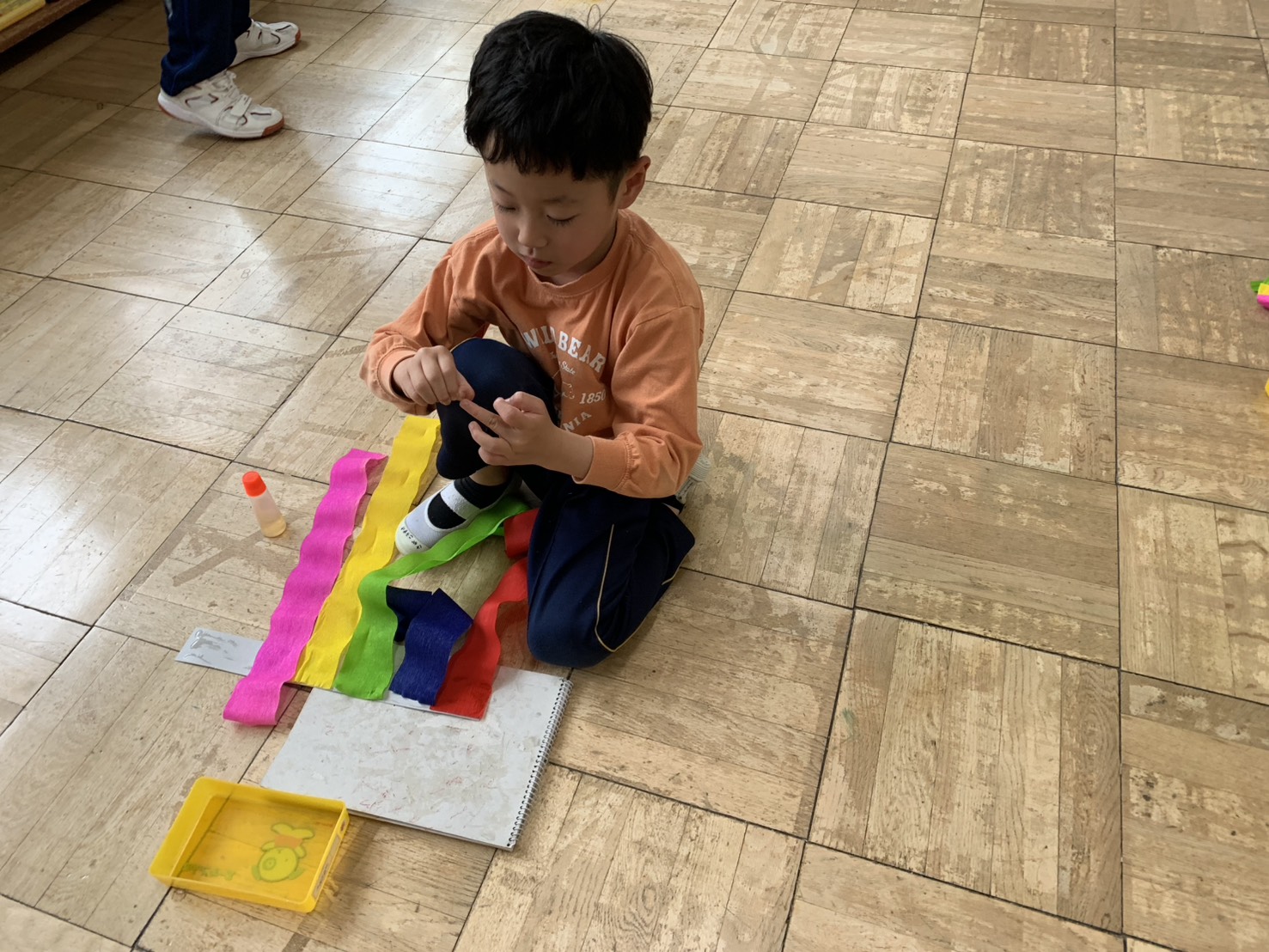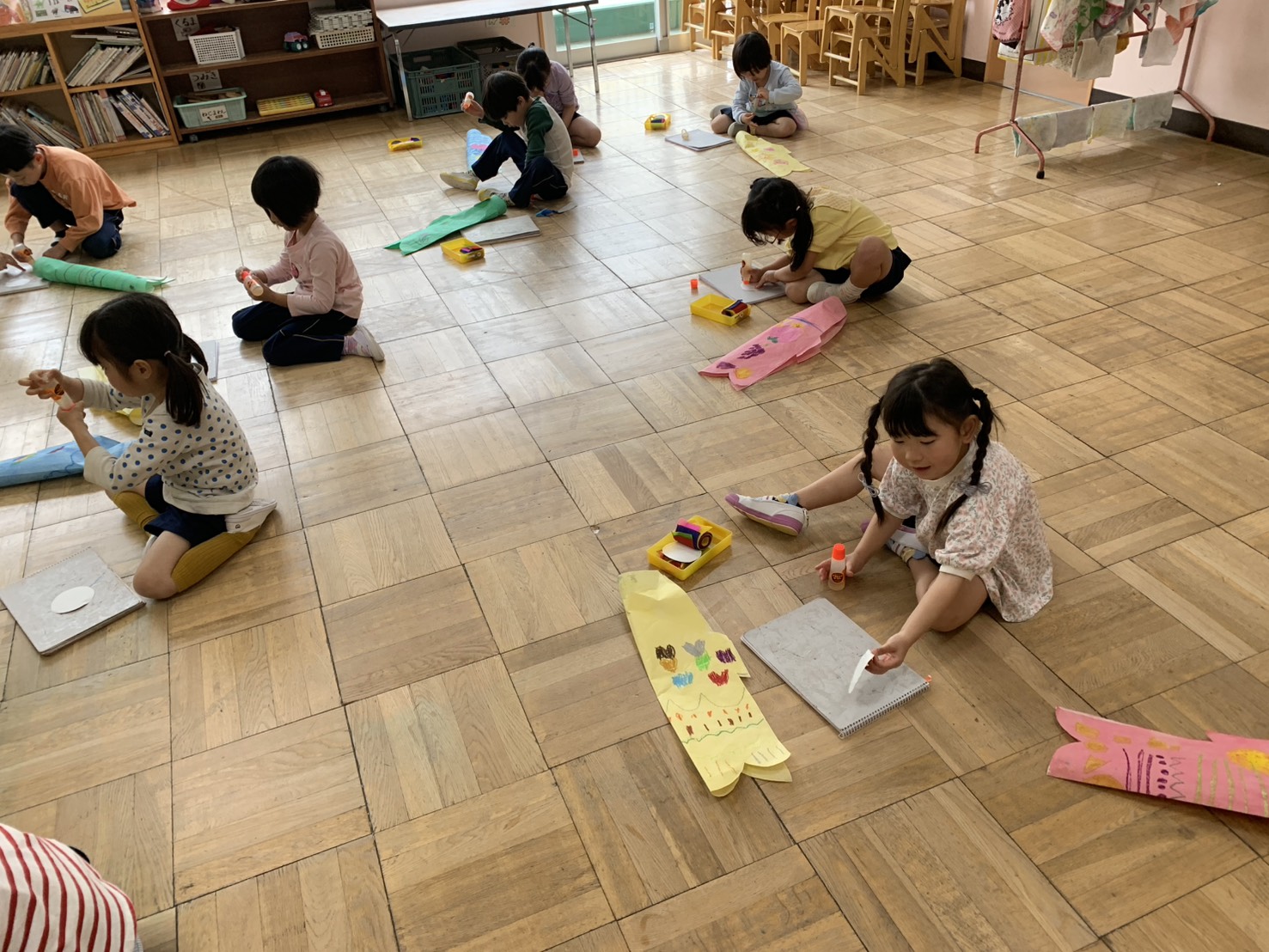 今日はこいのぼりに目をつけました!吹き流しも、のりを使って一つひとつ丁寧に貼ることができました!