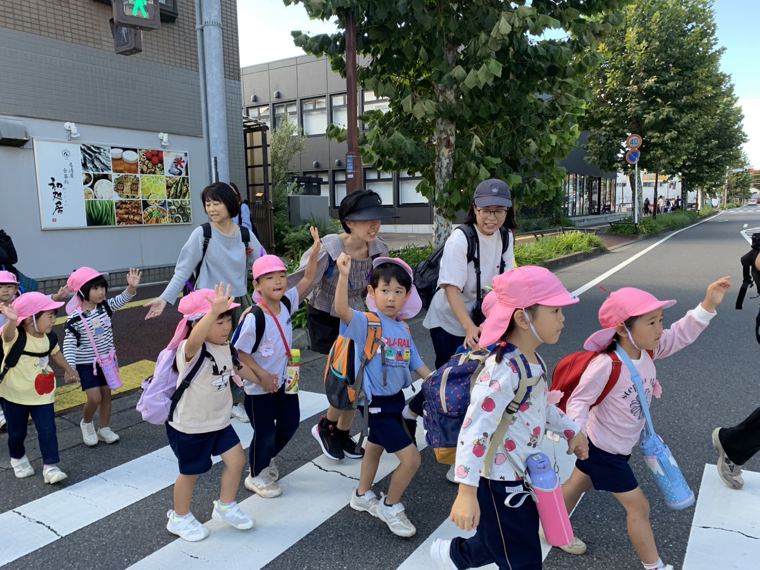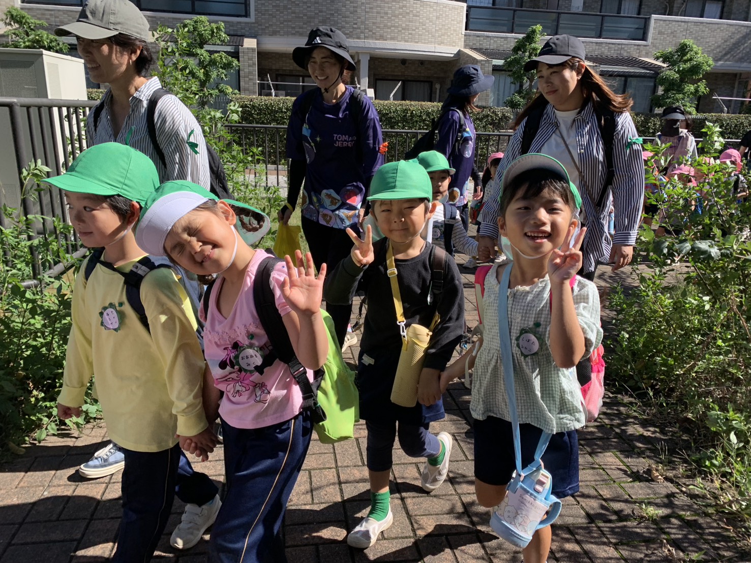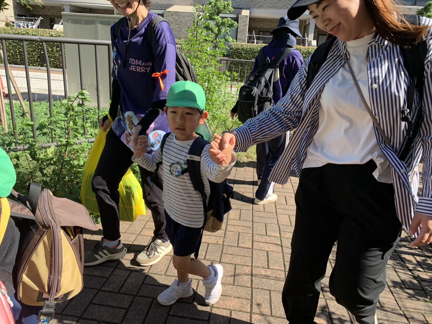 電車に乗って幼稚園を出発!芋畑に着くと、張り切ってお芋掘りです。土の中からお芋が見えてくると、「あったよー!」と嬉しそうな子どもたちでした☆公園でお昼ごはんとおやつを食べて、たくさん遊んで、自分たちで掘ったお芋の重みを感じながら歩いて帰ってきました!みんなよくがんばったね!