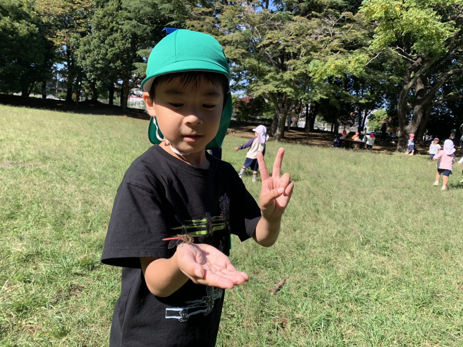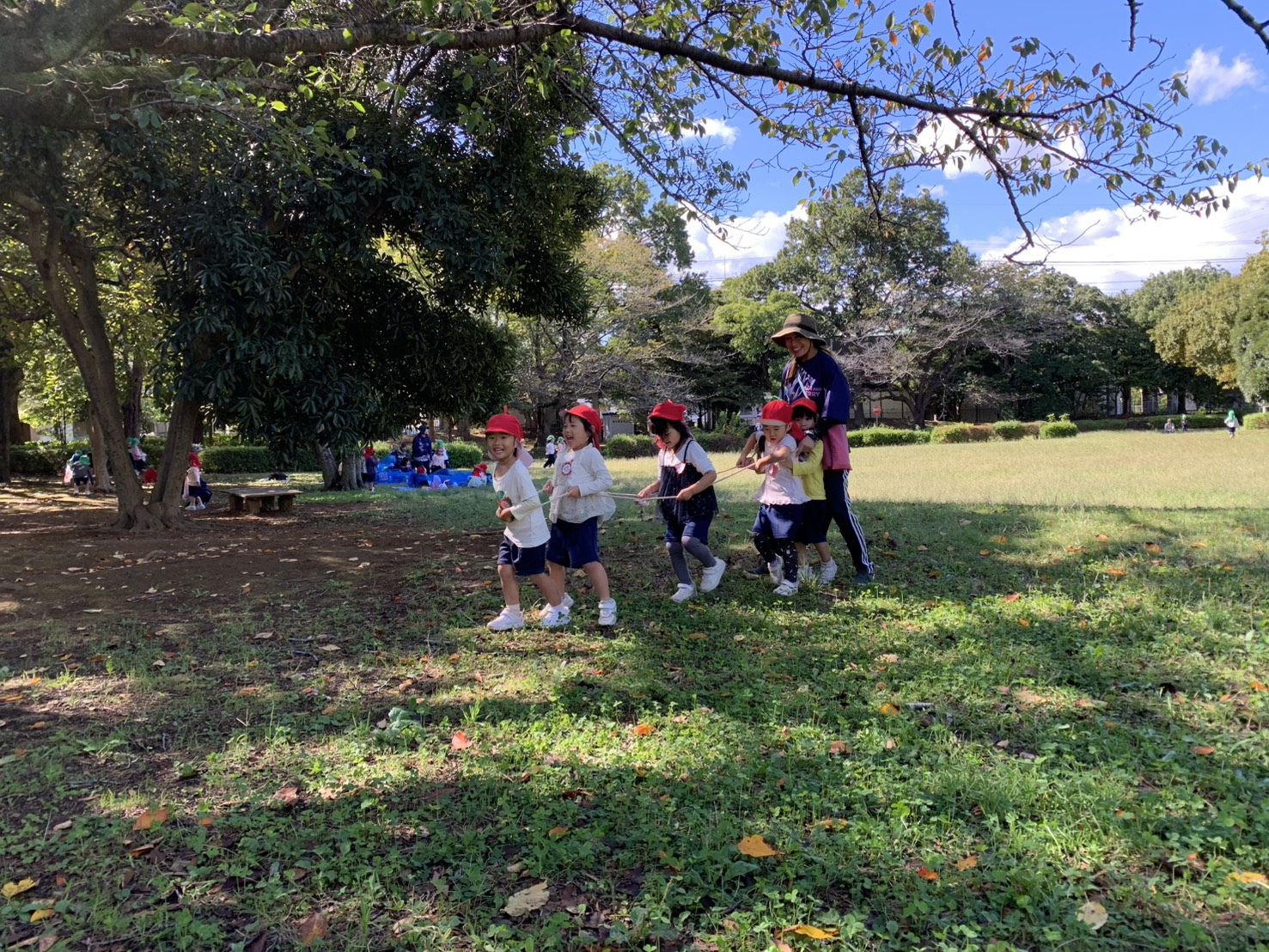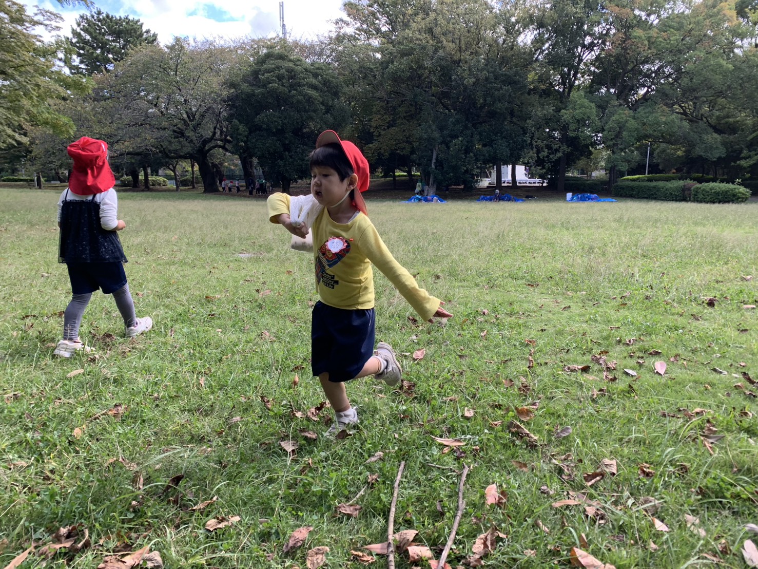 歩いて遠足に行きました☆公園ではたくさんのどんぐりや虫を見つけることが出来ました☆芝生の上で友だちと思いっ切り体を動かしてとても楽しかったね♪