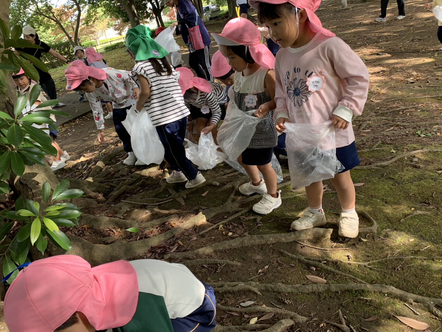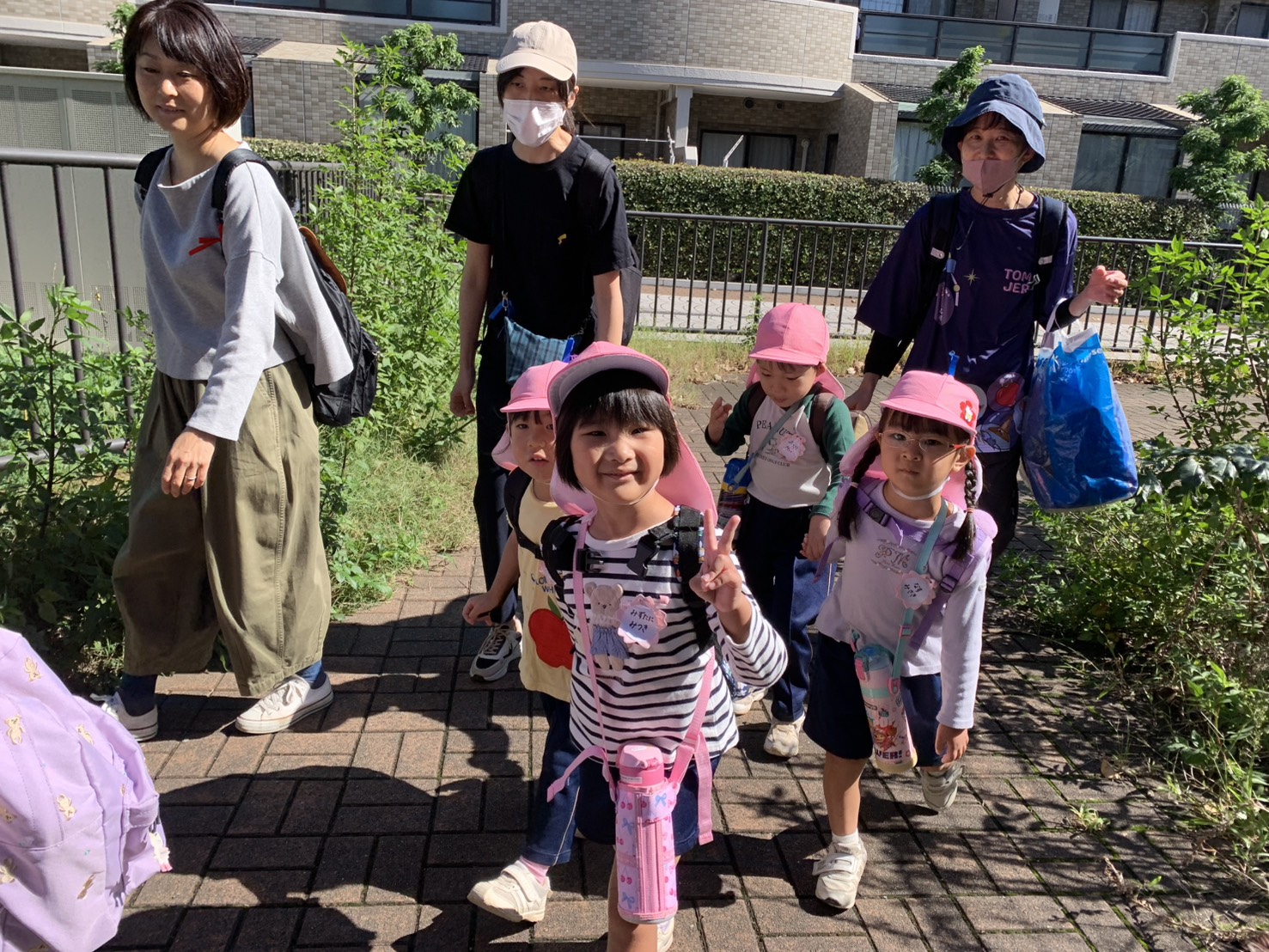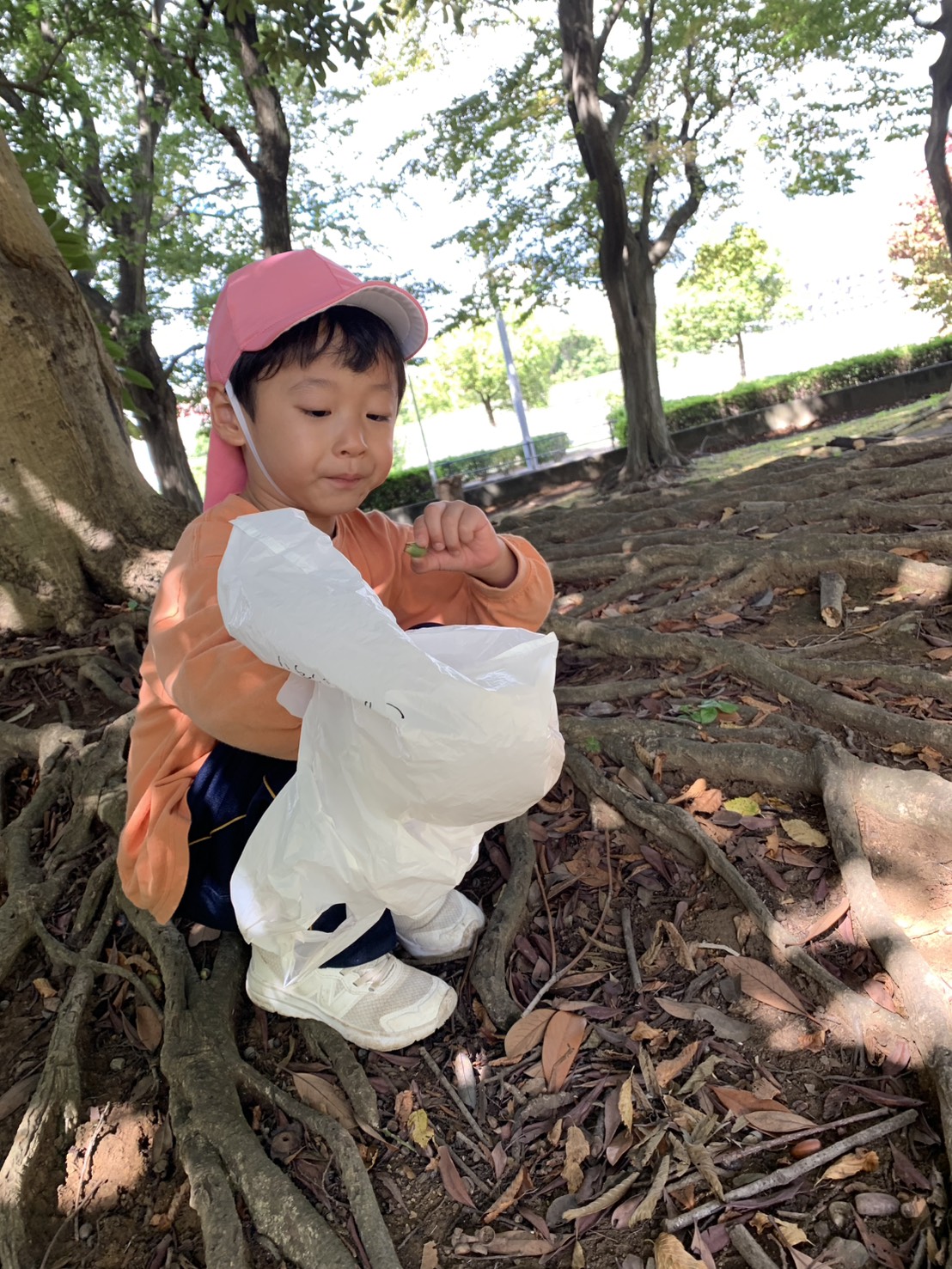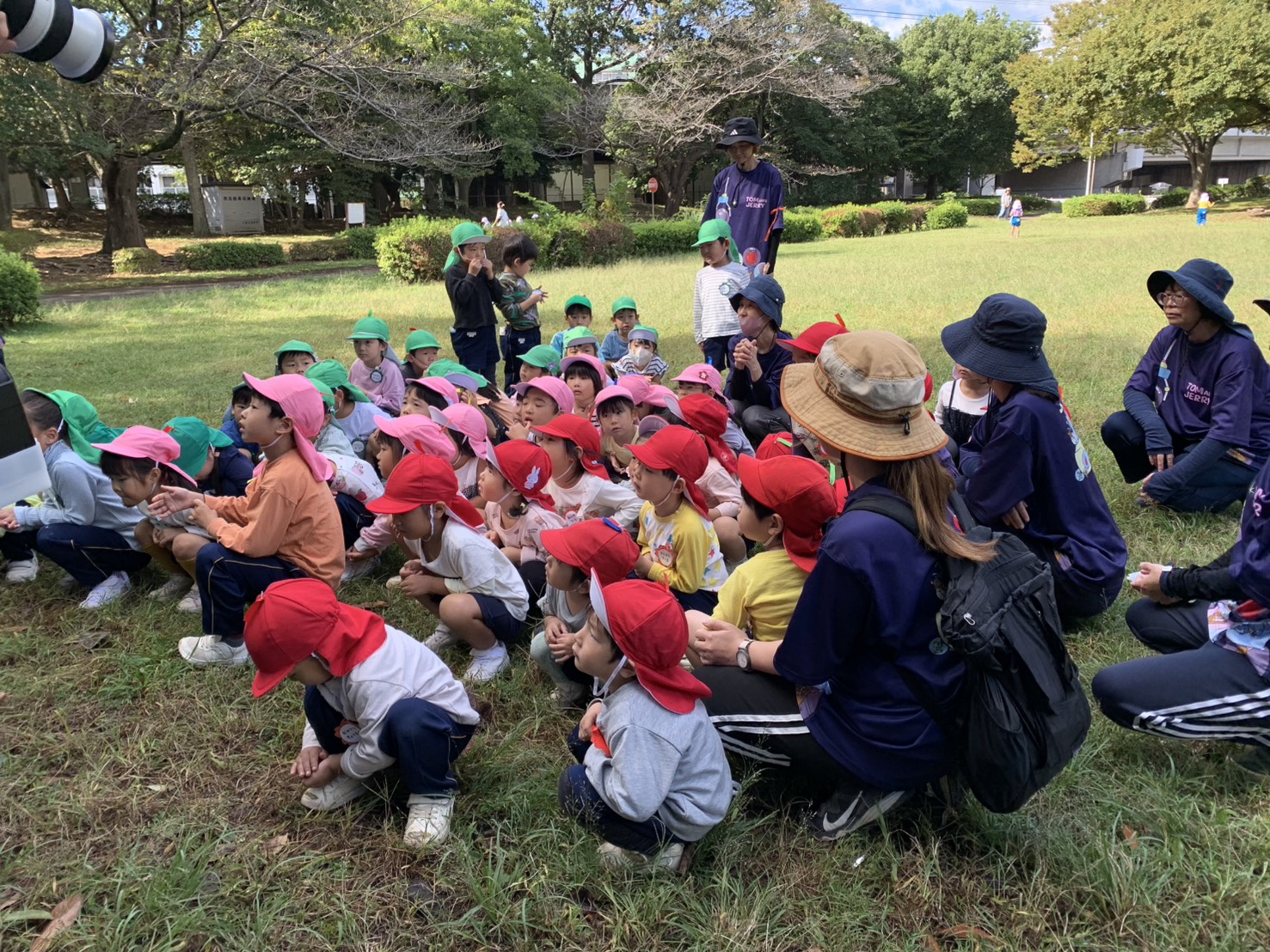 歩いて遠足に行きました☆公園ではたくさんのどんぐりや虫を見つけることが出来ました☆芝生の上で友だちと思いっ切り体を動かしてとても楽しかったね♪