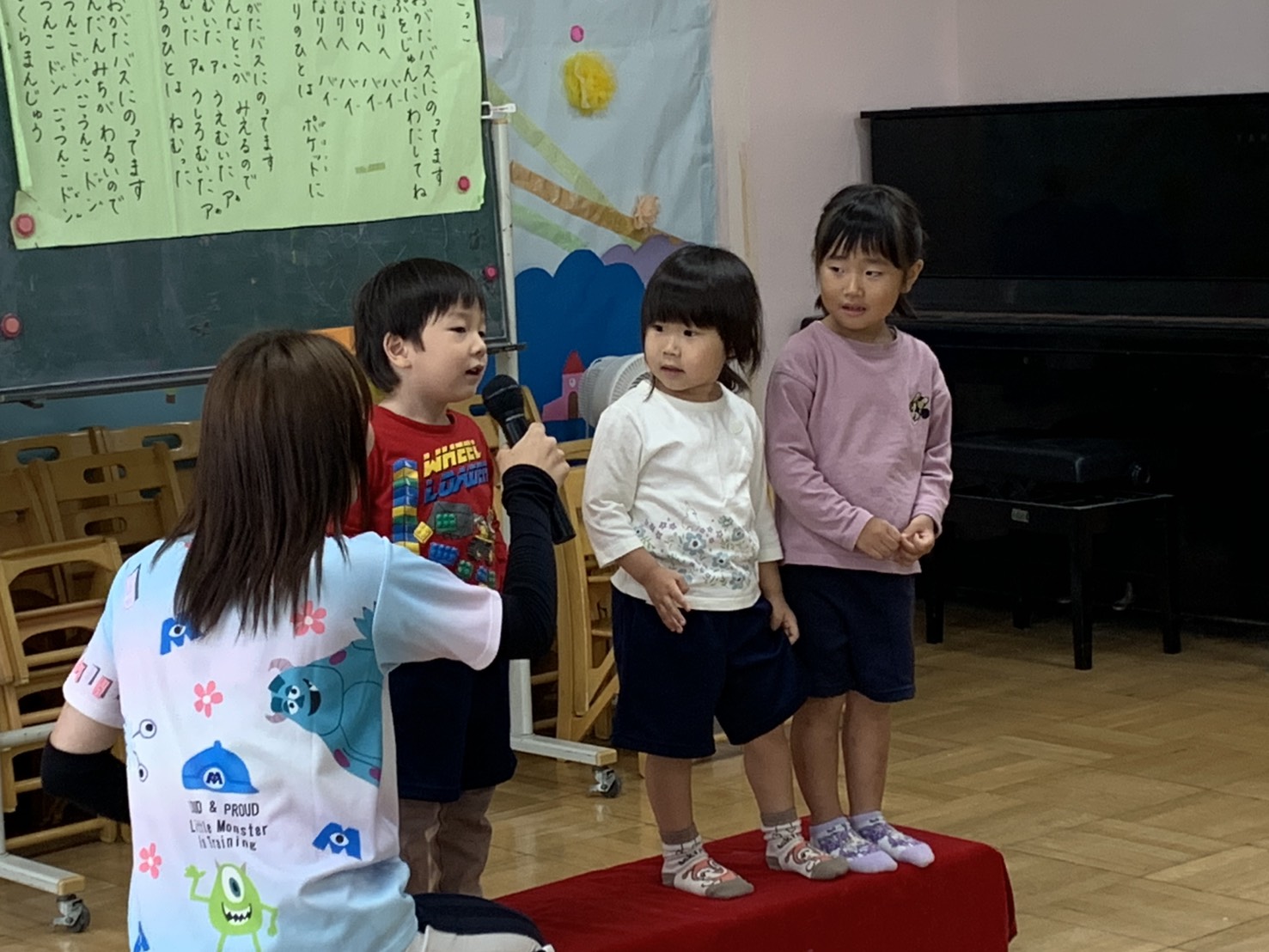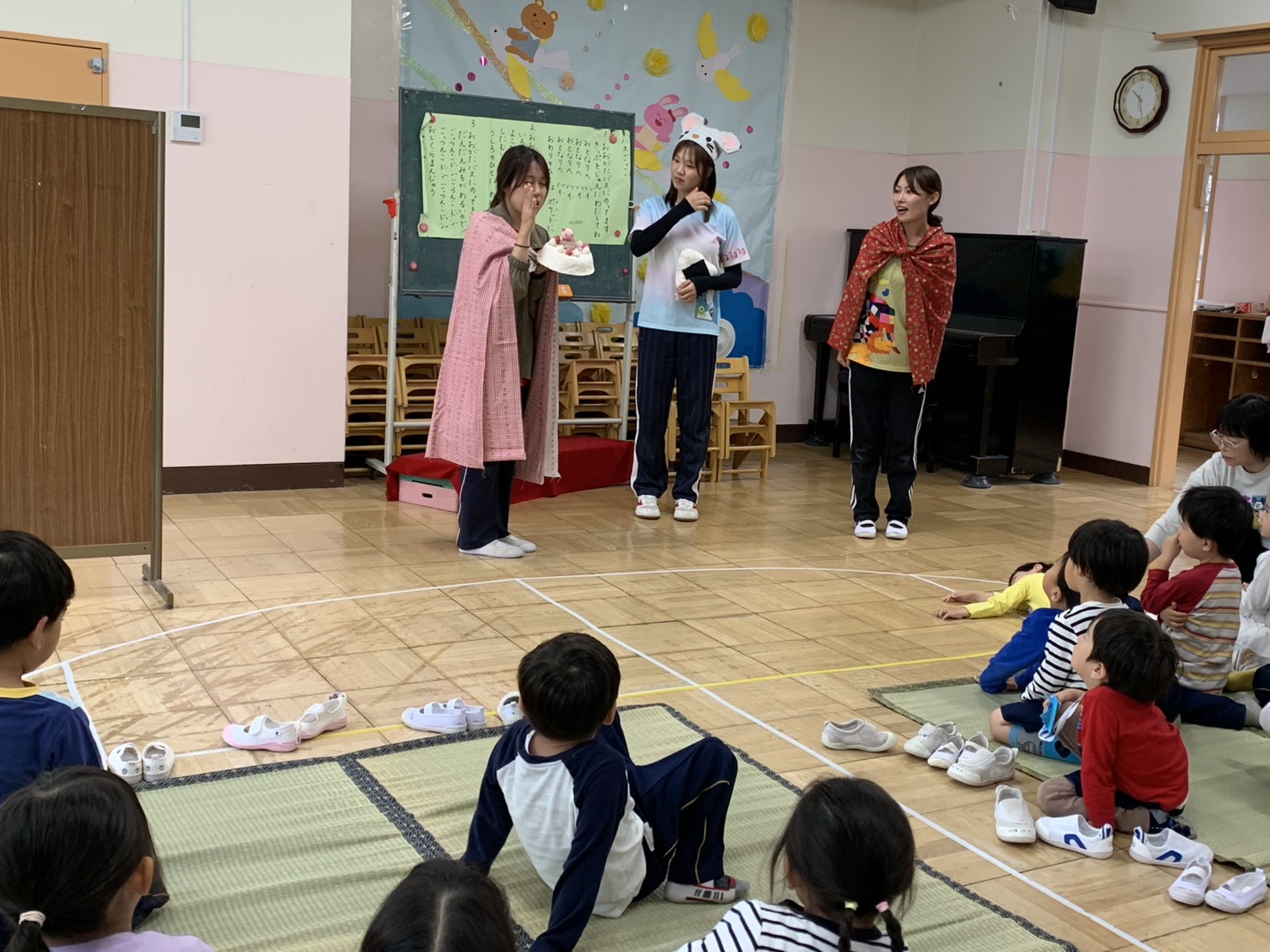 10月生まれお誕生日会 2025 年 10 月 15 日 今日は10月生まれのお友だちをみんなでお祝いしました!みんなで歌を歌ったり、おむすびころりんの劇を見たり、楽しい時間でした☆10月生まれのお友だちお誕生日おめでとう!