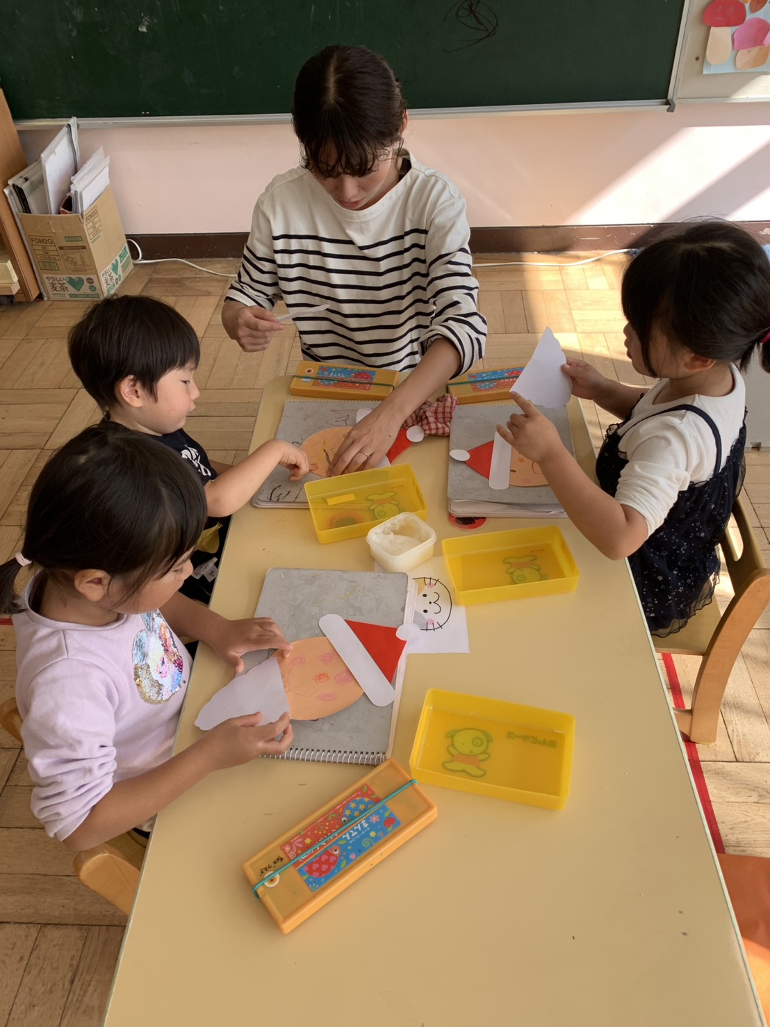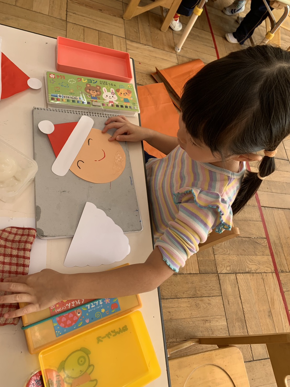 今日はサンタの袋を作りました。サンタさんの顔や手足を上手に描けました!