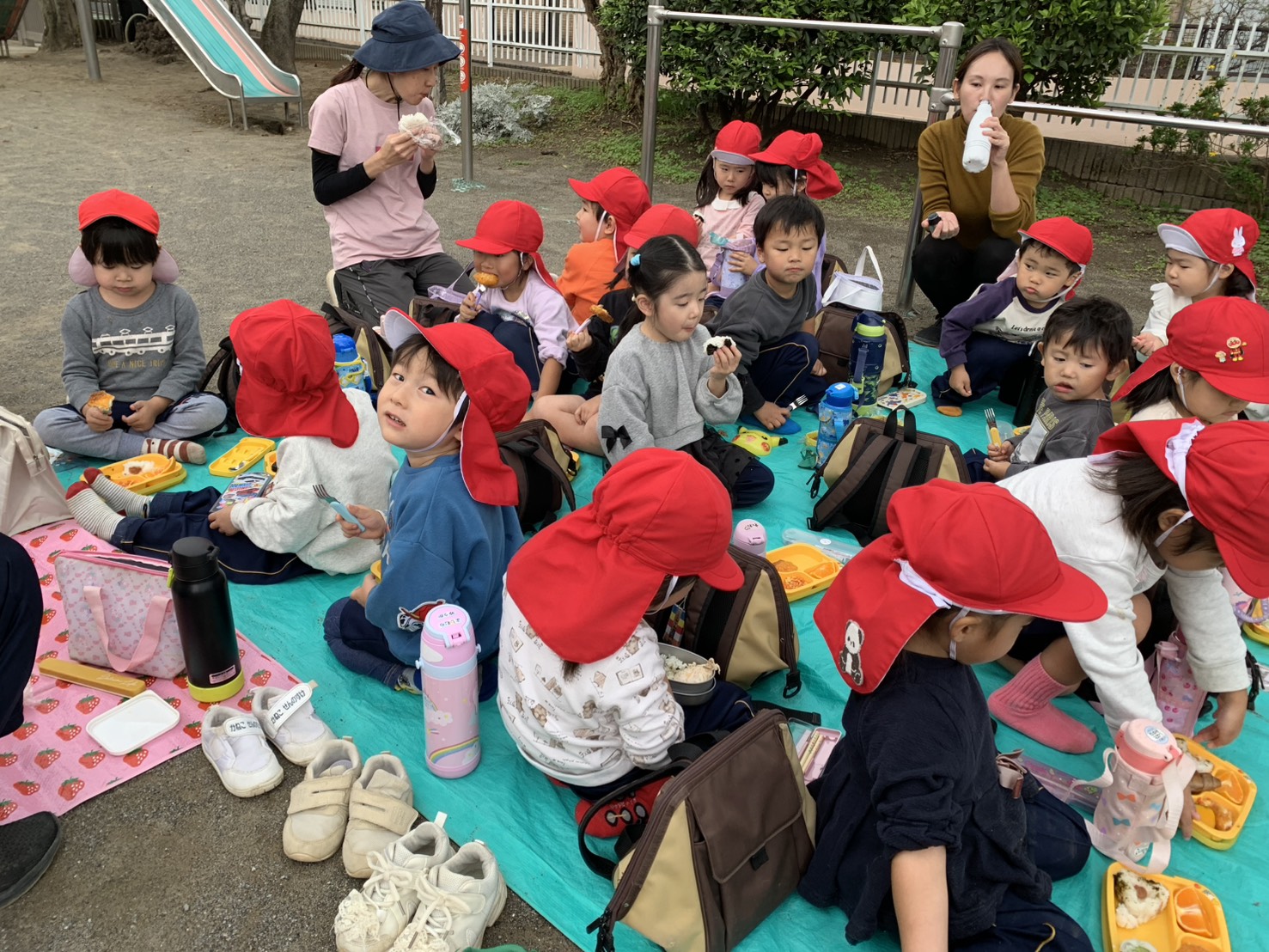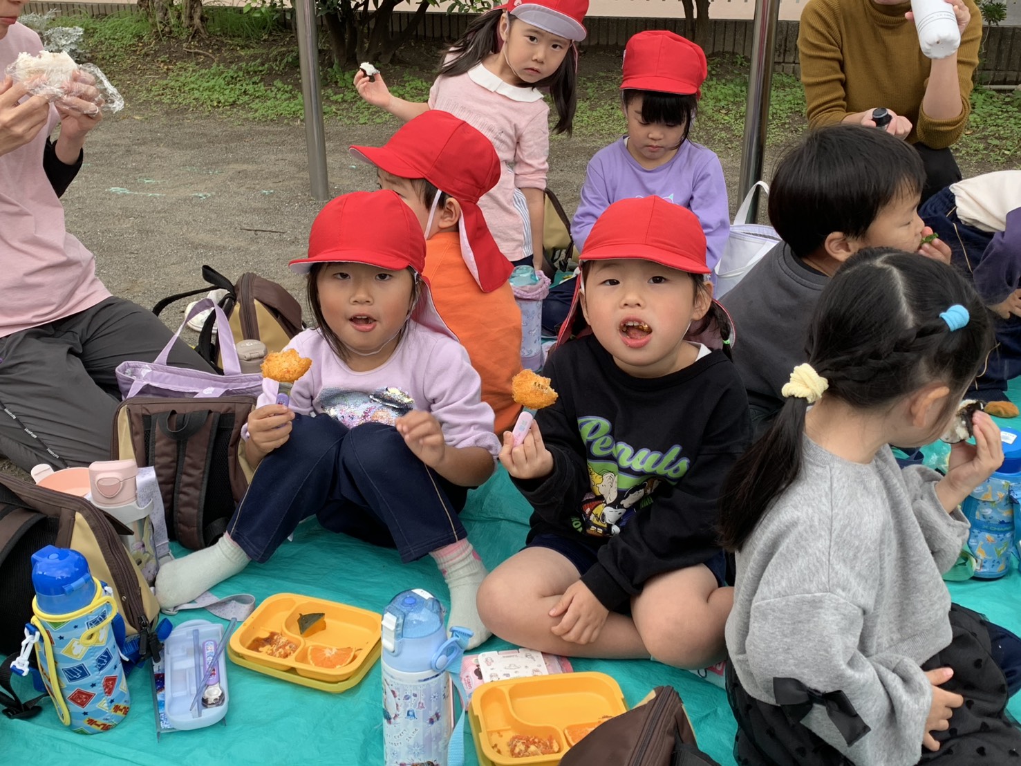 みんなで外でご飯を食べました!