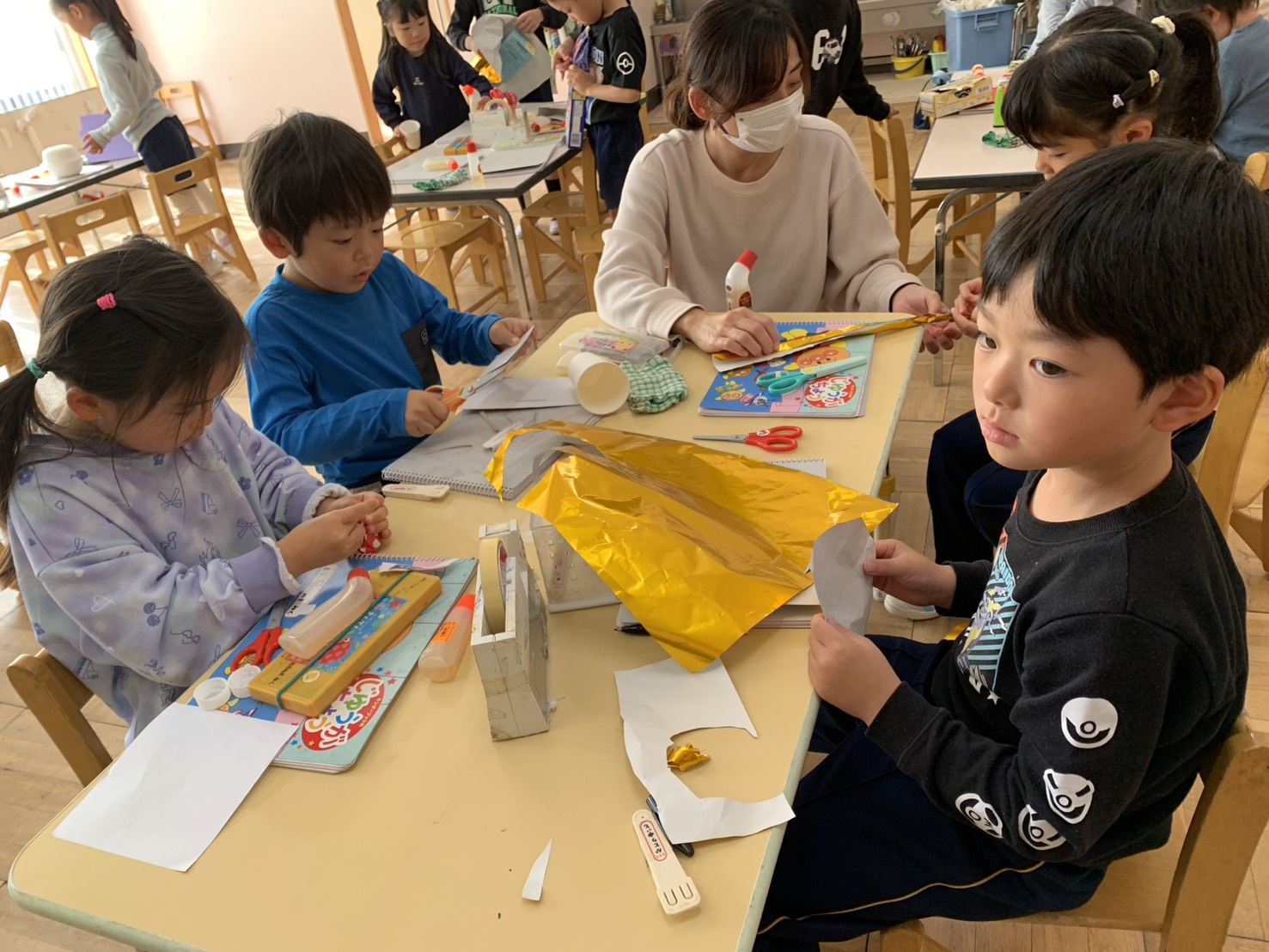紙で色をつけたり飾りをつけたりして、とても素敵な作品を作ることが出来ました!
