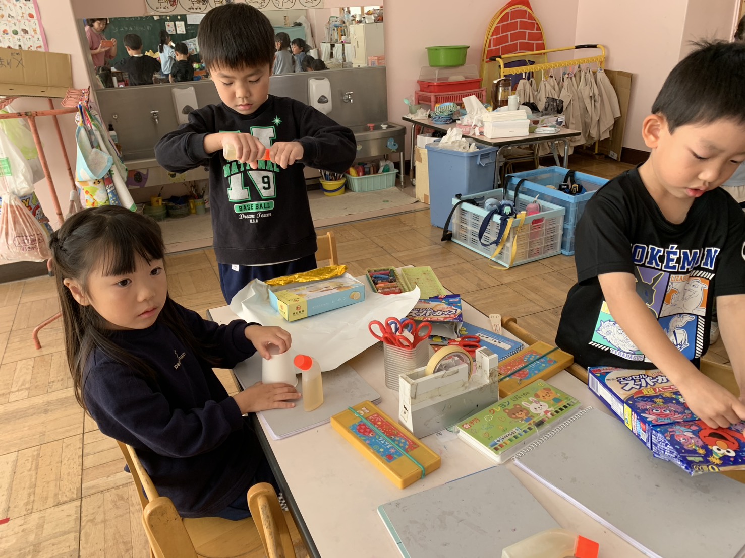 今日はクリスマスにもらいたいプレゼントやクリスマスに飾りたいものを廃材を使って作りました♪