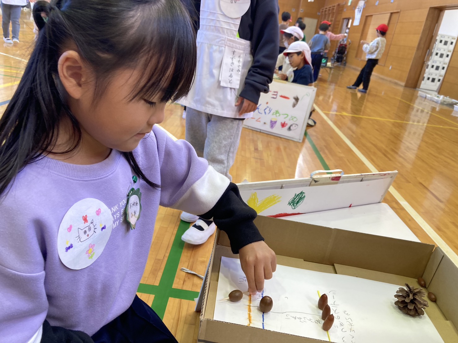 みどり町小学校の1年生が、秋の自然物を使ったゲーム遊びを考えてくれました。