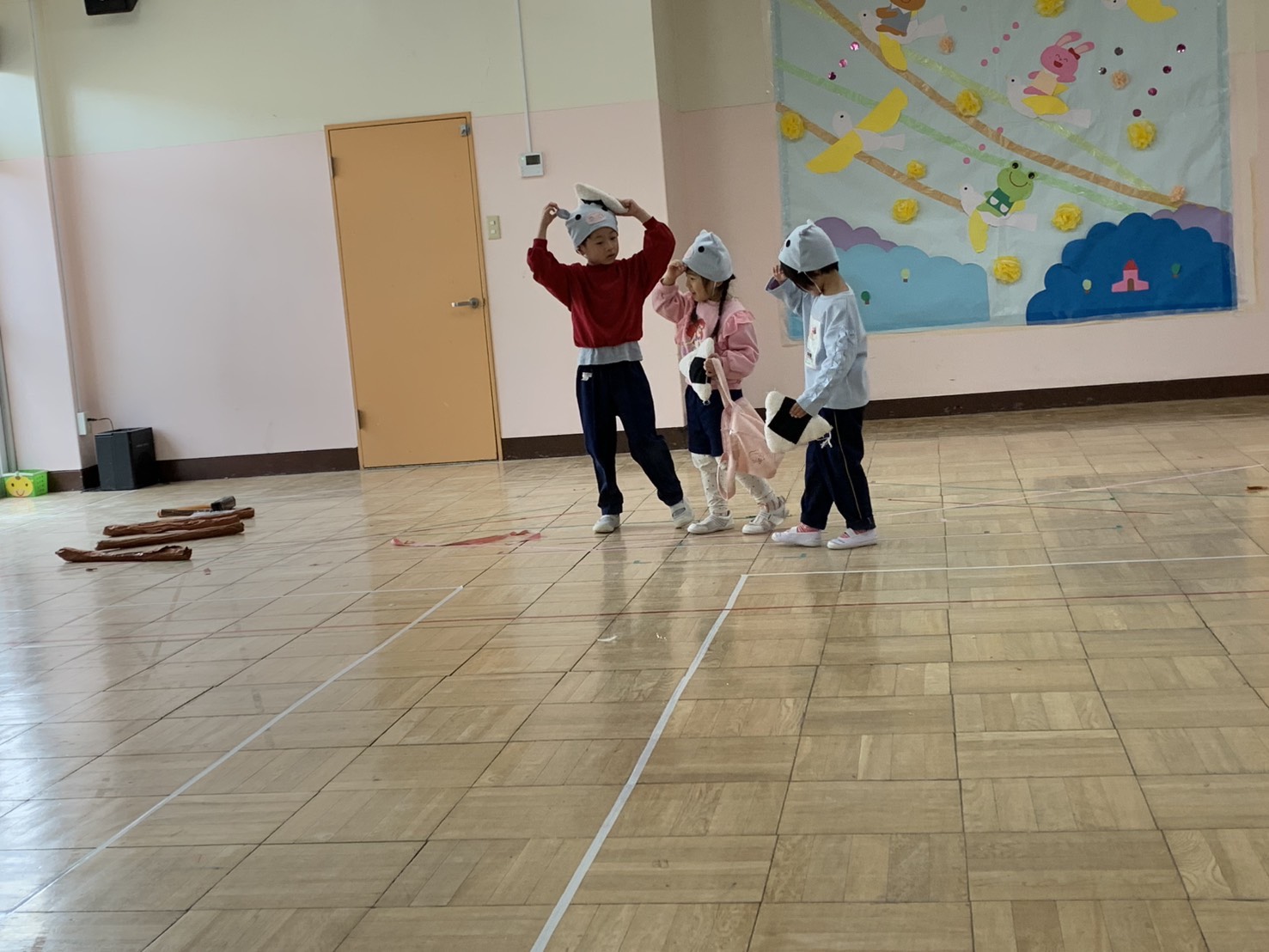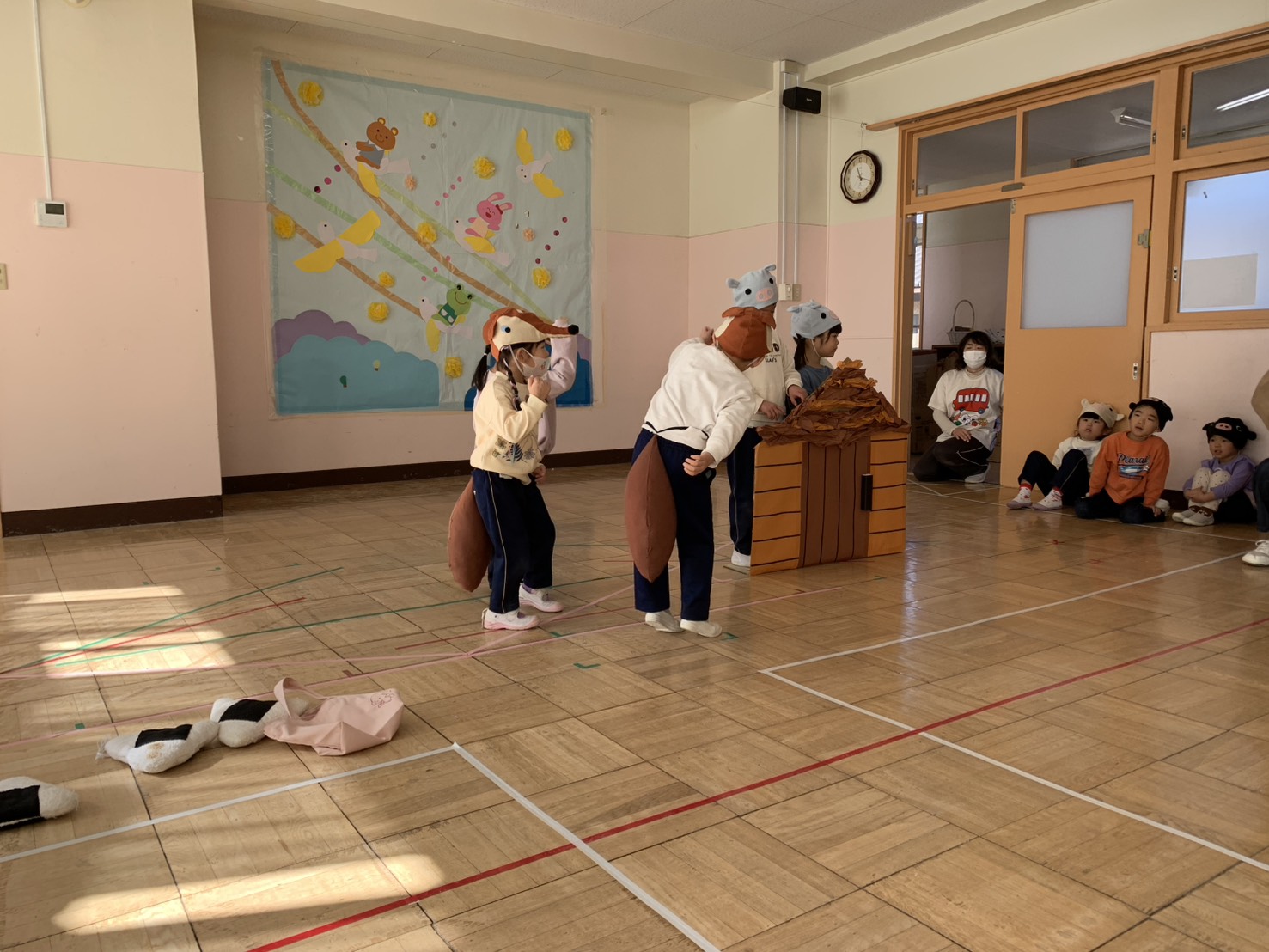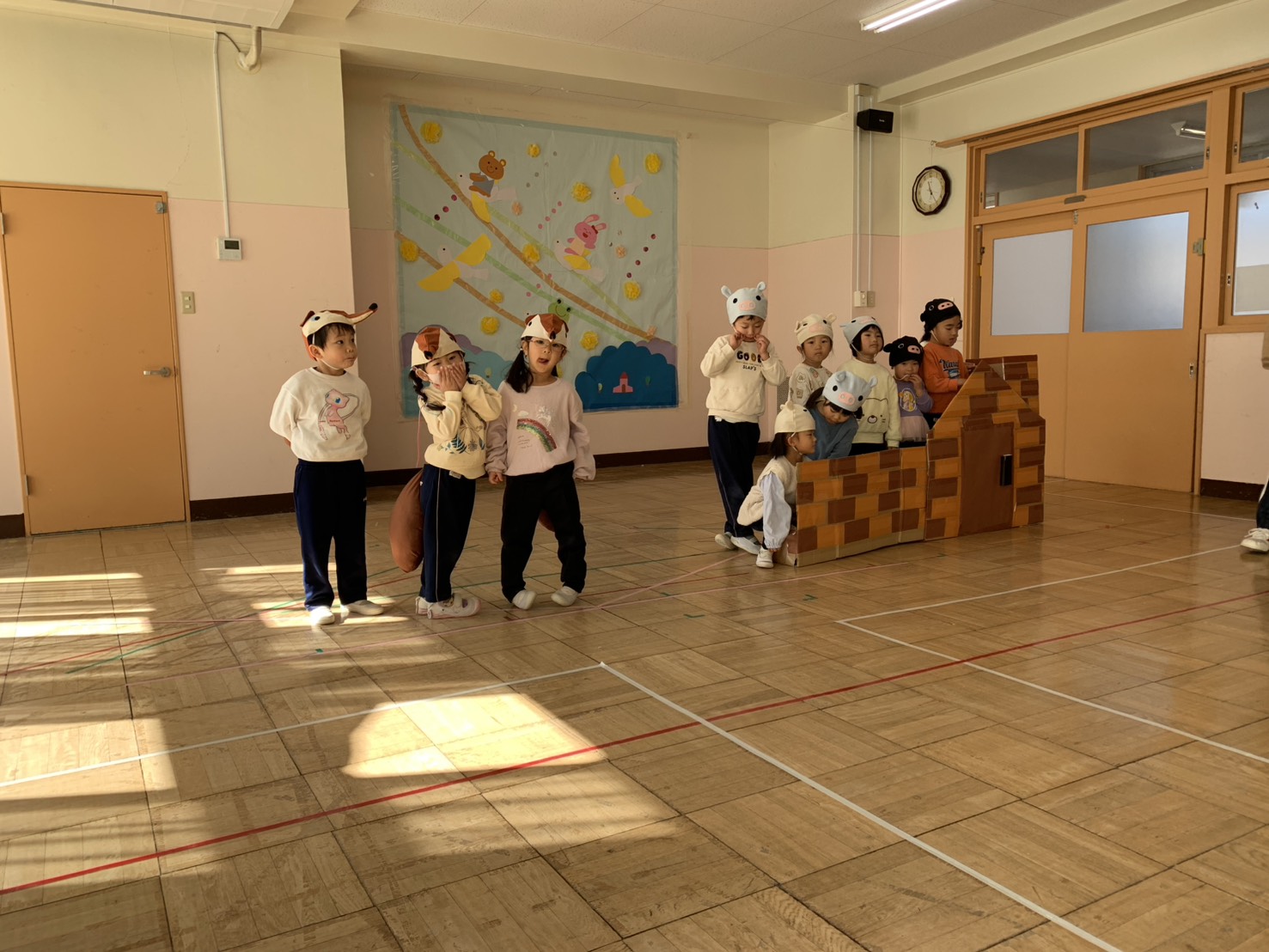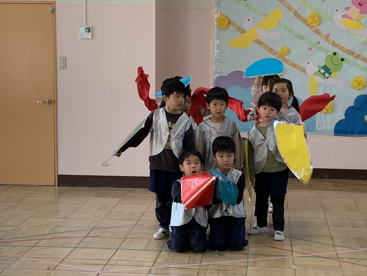 お家の人にかっこいいところを見せたいと劇やリズム、歌の練習を頑張っています♫