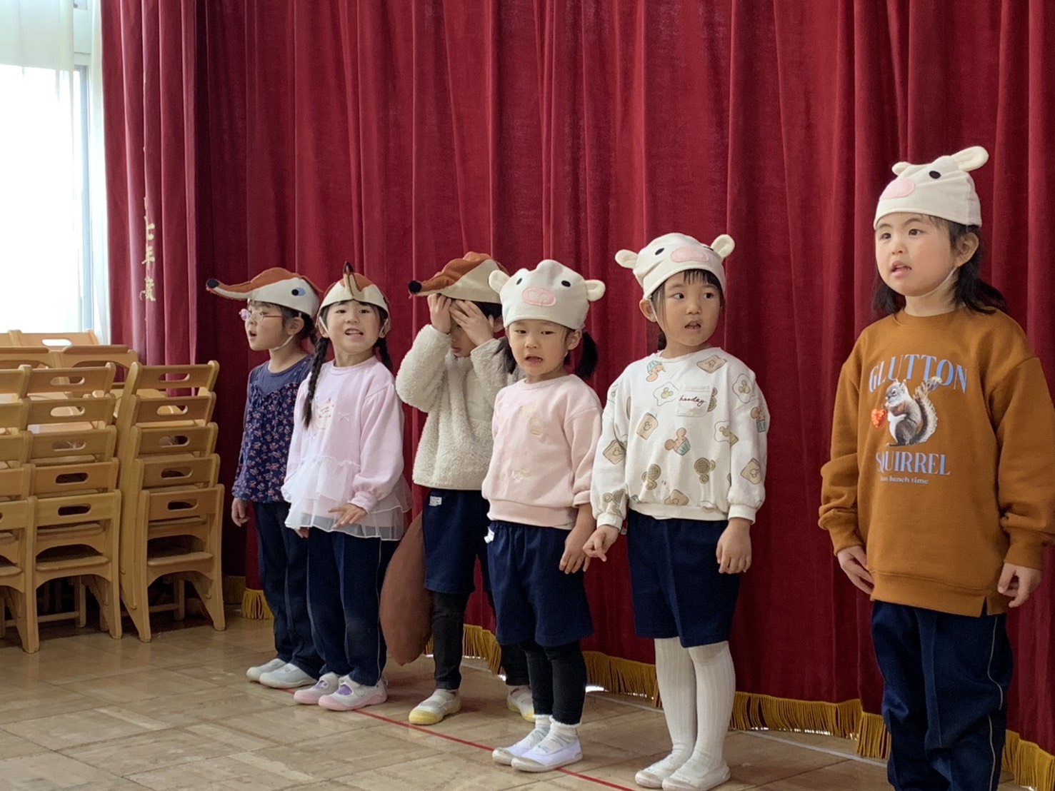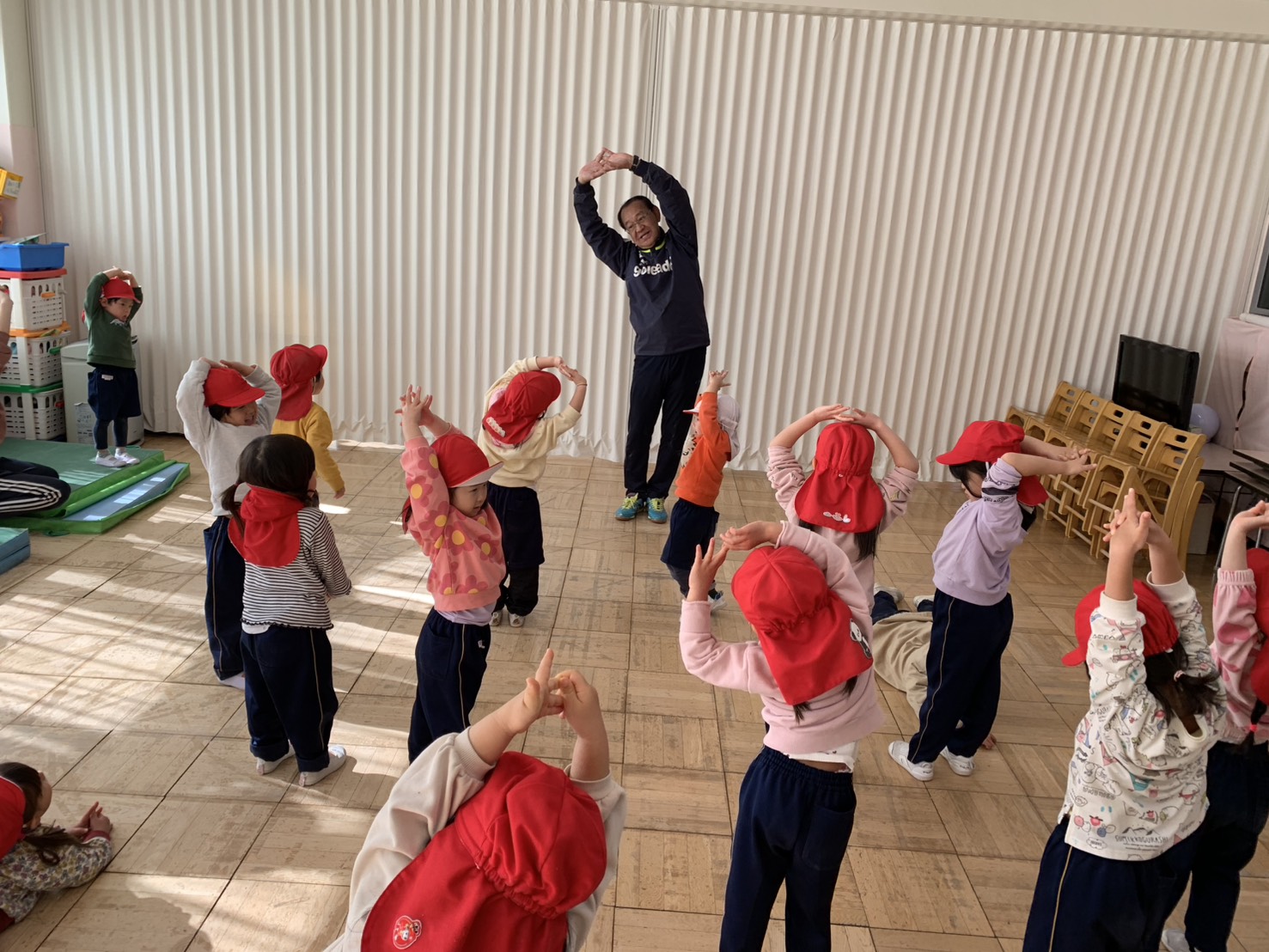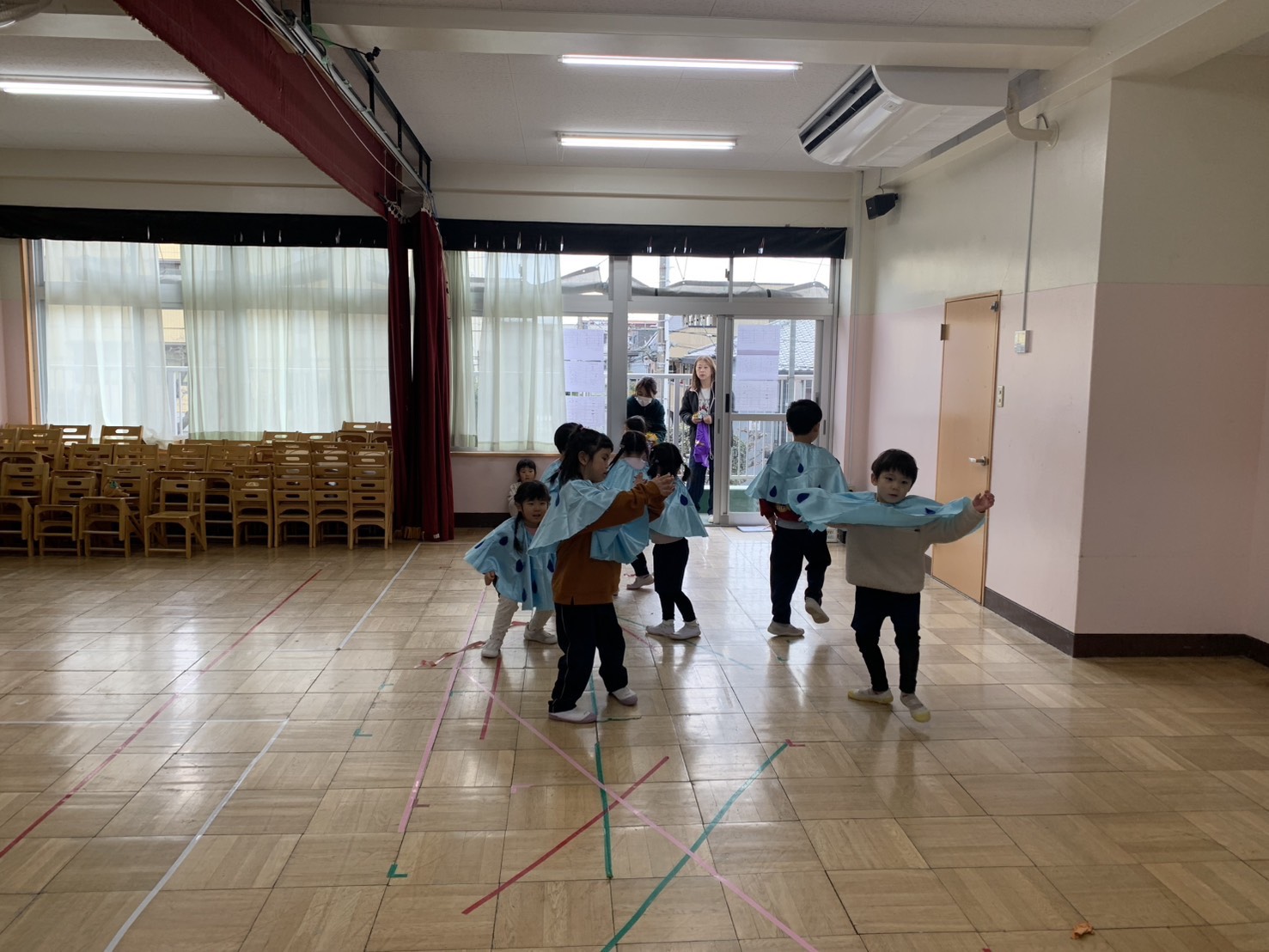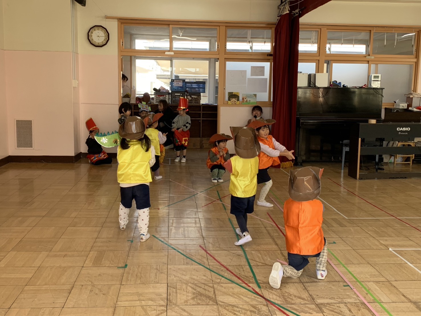 お家の人にかっこいいところを見せたいと劇やリズム、歌の練習を頑張っています♫