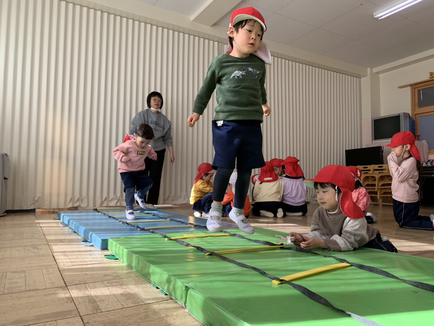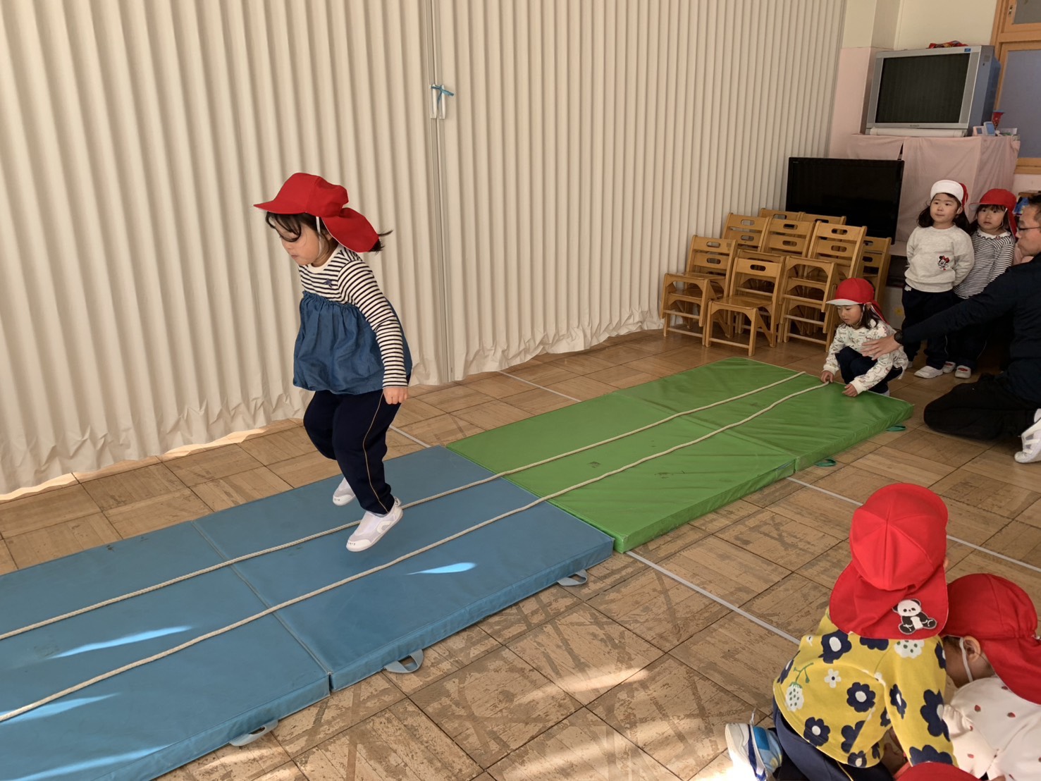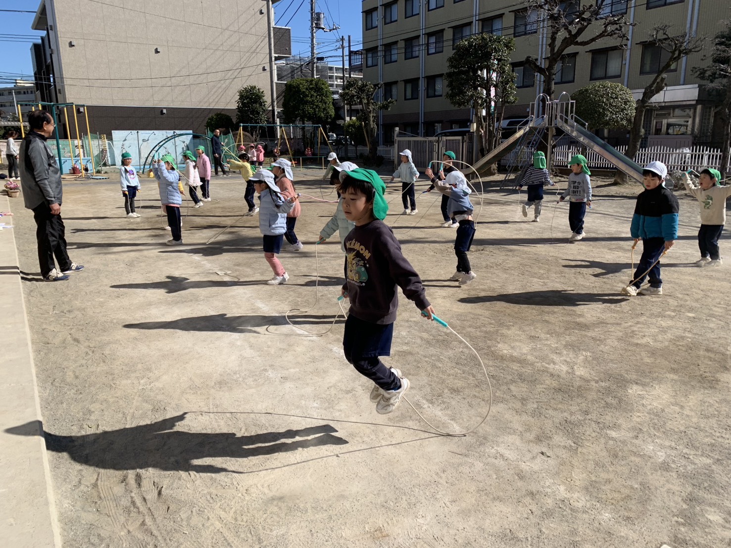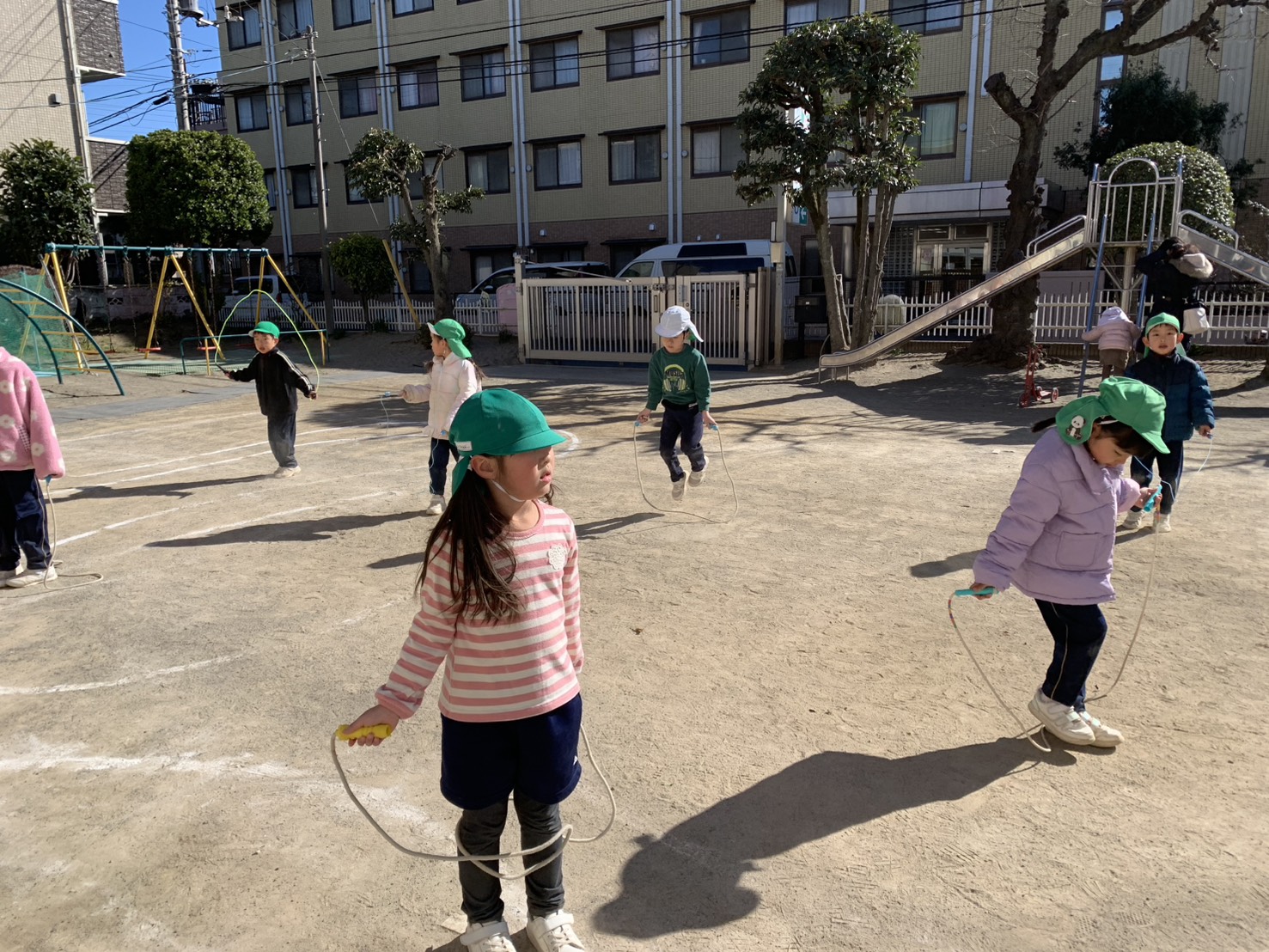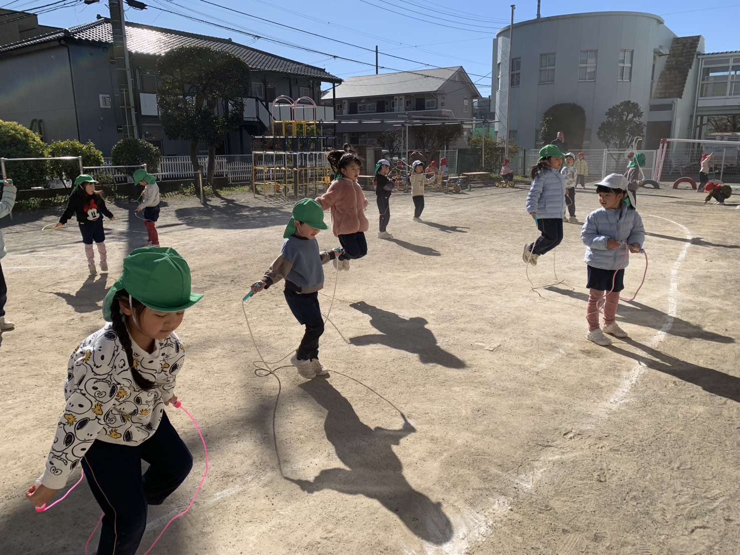 さくら組はジャンプの練習をして、なわとびがたくさん出来るように頑張っています!
